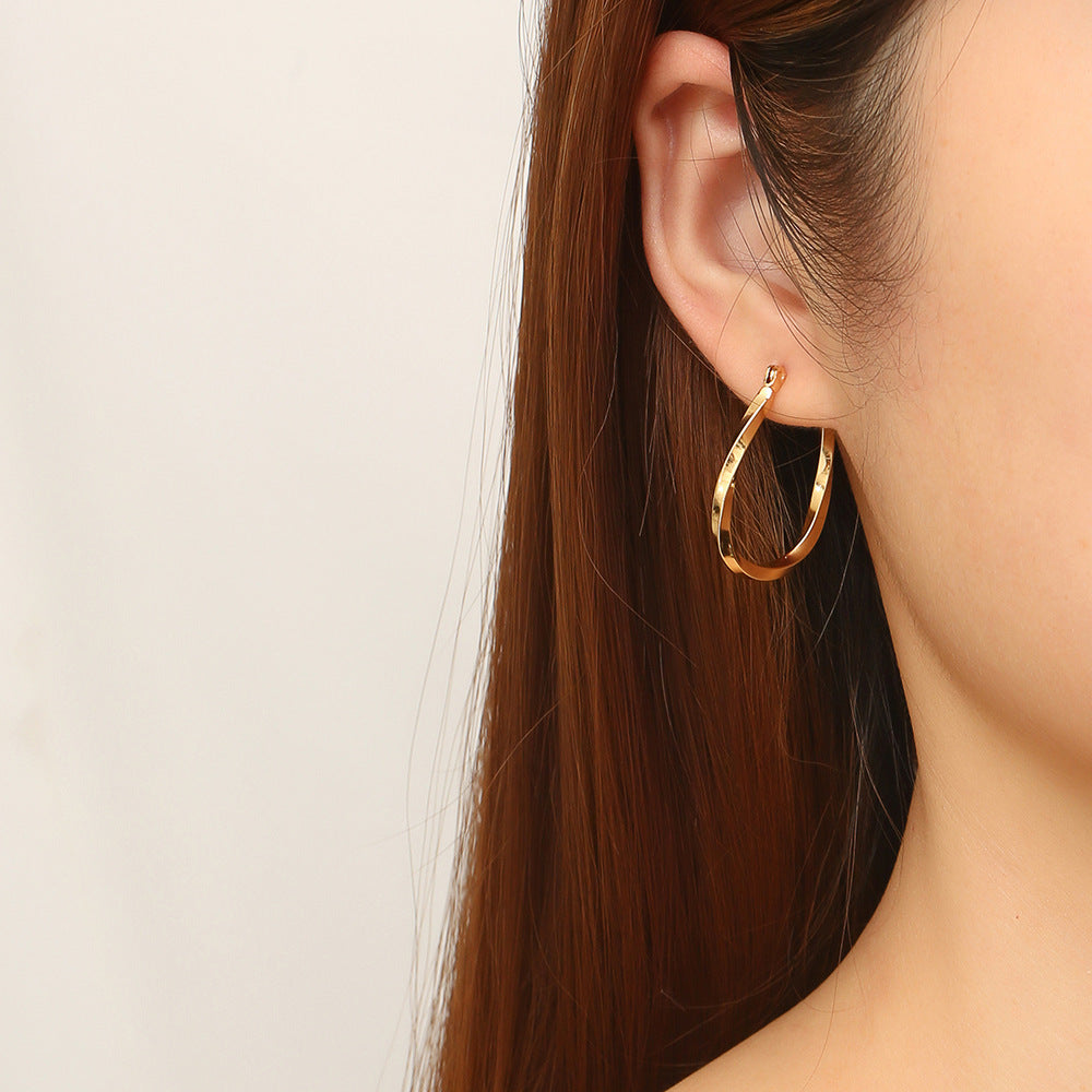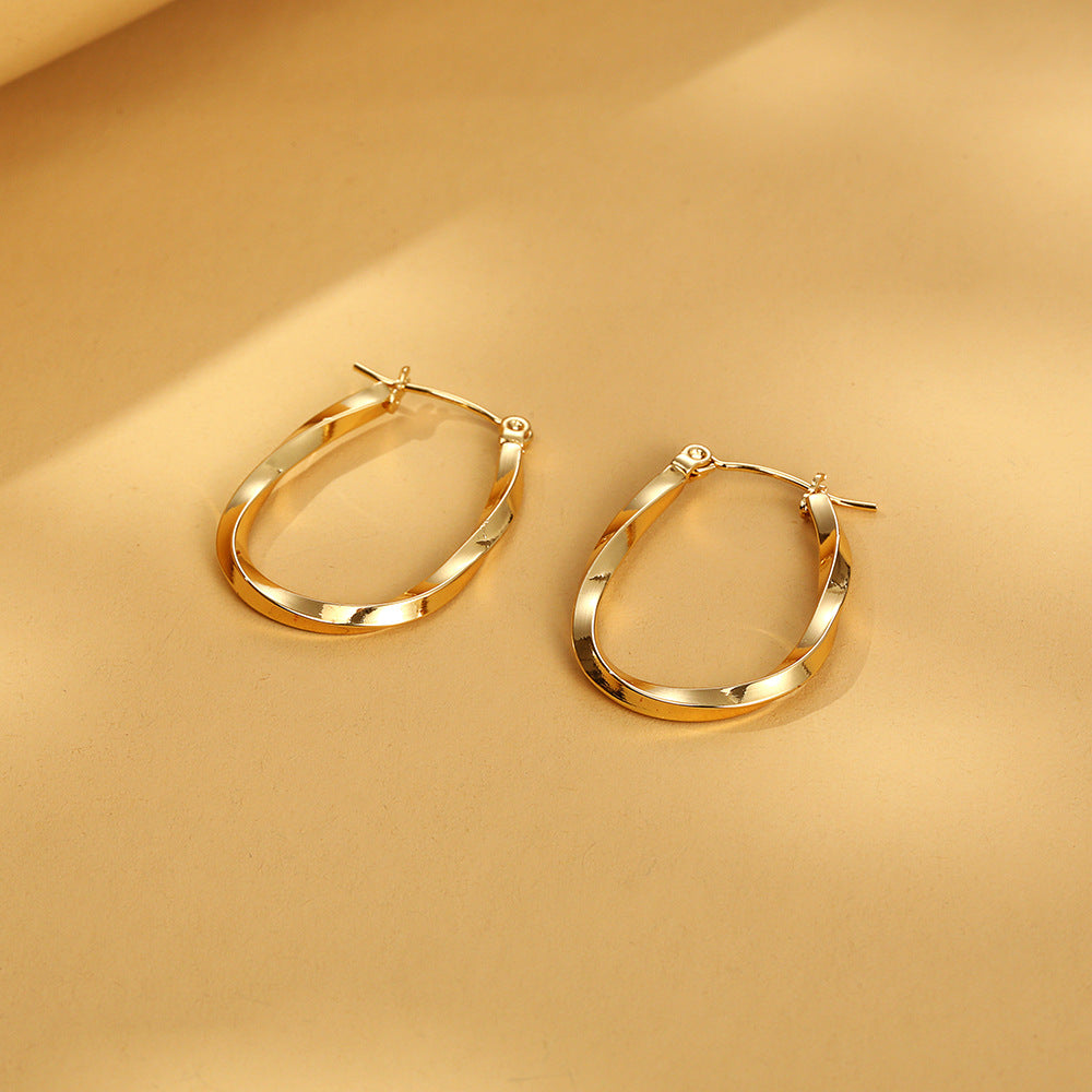 Het verfijnde, gedraaide ontwerp zorgt voor een subtiel maar opvallend statement, perfect voor de vrouw die houdt van minimalistische en tijdloze accessoires.